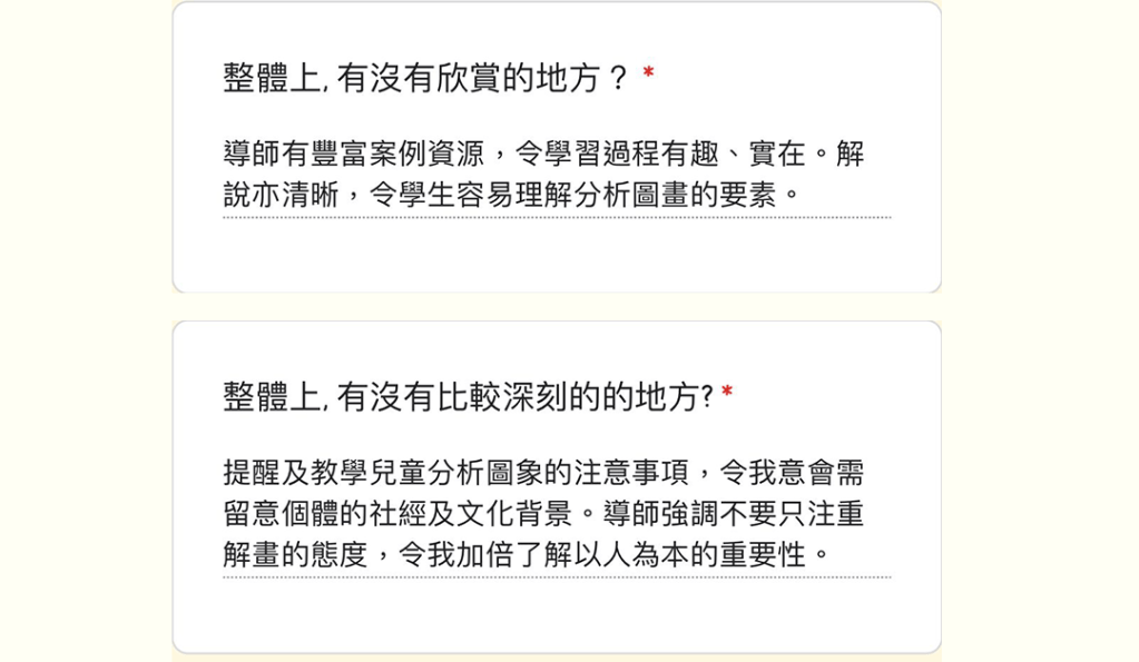 | 學習收穫 | 學員「認識咗一些符號意思」 | 學員能掌握基礎工具(HTP、HFD、DAPIR、FEATS),並學懂提問技巧與延伸藝術活動 |