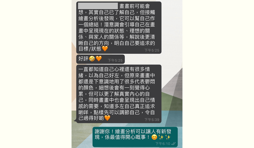 • 課程能讓學生尋找到學習的方向,有機會進修成為繪畫心理分析與應用導師。