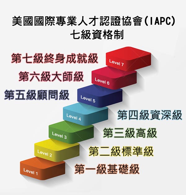 IAPC 的特色在於「七級資格制度」: