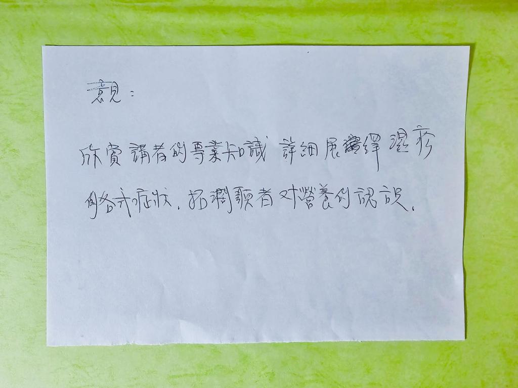 欣賞講員的專業知識、詳細展示症狀,擴闊聆聽者對營養的知識