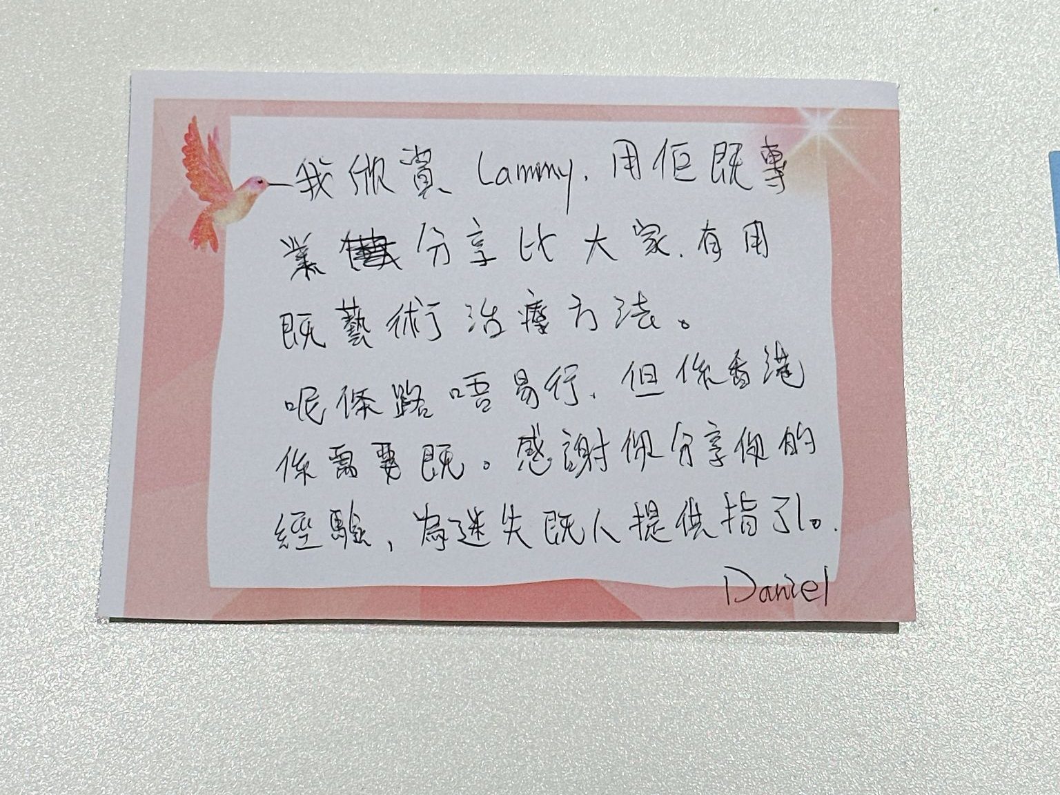 整個課堂氣氛很好,大家都很輕鬆愉快,理論很受用,謝謝你!