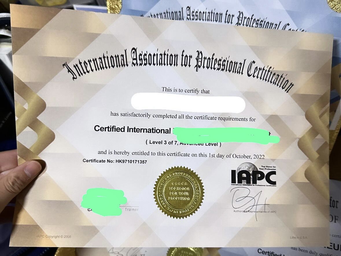 對的,完成課程後能在香港成為講師,並能向你的學生提供相關課程,但香港要成為一位具認受性的治療師,大部分必須要符合香港或國際的碩士學位要求。是次國際證書課程是美國專業人士協會認證,講師課程能讓你成為發牌國際證書的講師,你能授權申請國際IAPC美國專業人士協會的證書給你的學生。